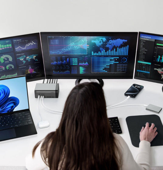 Universal docks and USB-C hubs designed to simplify workstation setups and reduce cable clutter.